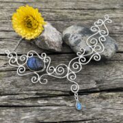 Sharp lines and angles and lots of textures make this garnet set necklace quite the statement piece. Suspended on a link chain with a secure lobster clasp.