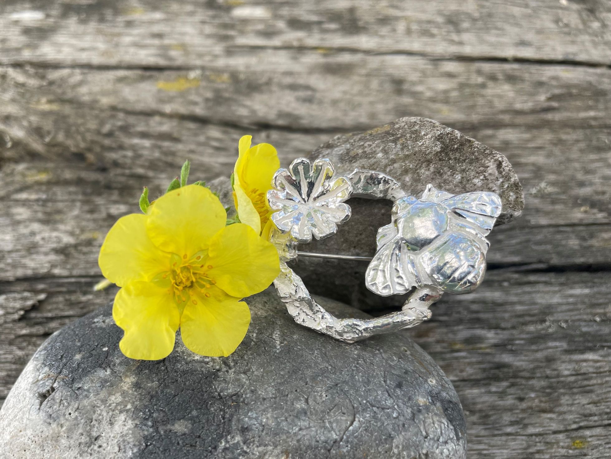 bee-flower-brooch-sterling silver-pretty-sandrakernsjewellery
