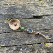 Real leaves collected in Italy, sit next to graduating deep blue labradorite briolettes and smaller labradorite beads.  As the light hits the stones the colours change and blues go to greens and greys. An ornate secure clasp complete the piece.
