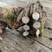 A real vine leaf coated in silver clay paste, over a number of weeks and then fired to create a silver replica of the original leaf. Silver ‘grapes’ are then added and some trailing vines to complete the look of a real growing vine brooch. On the reverse is a hook and pin clasp.